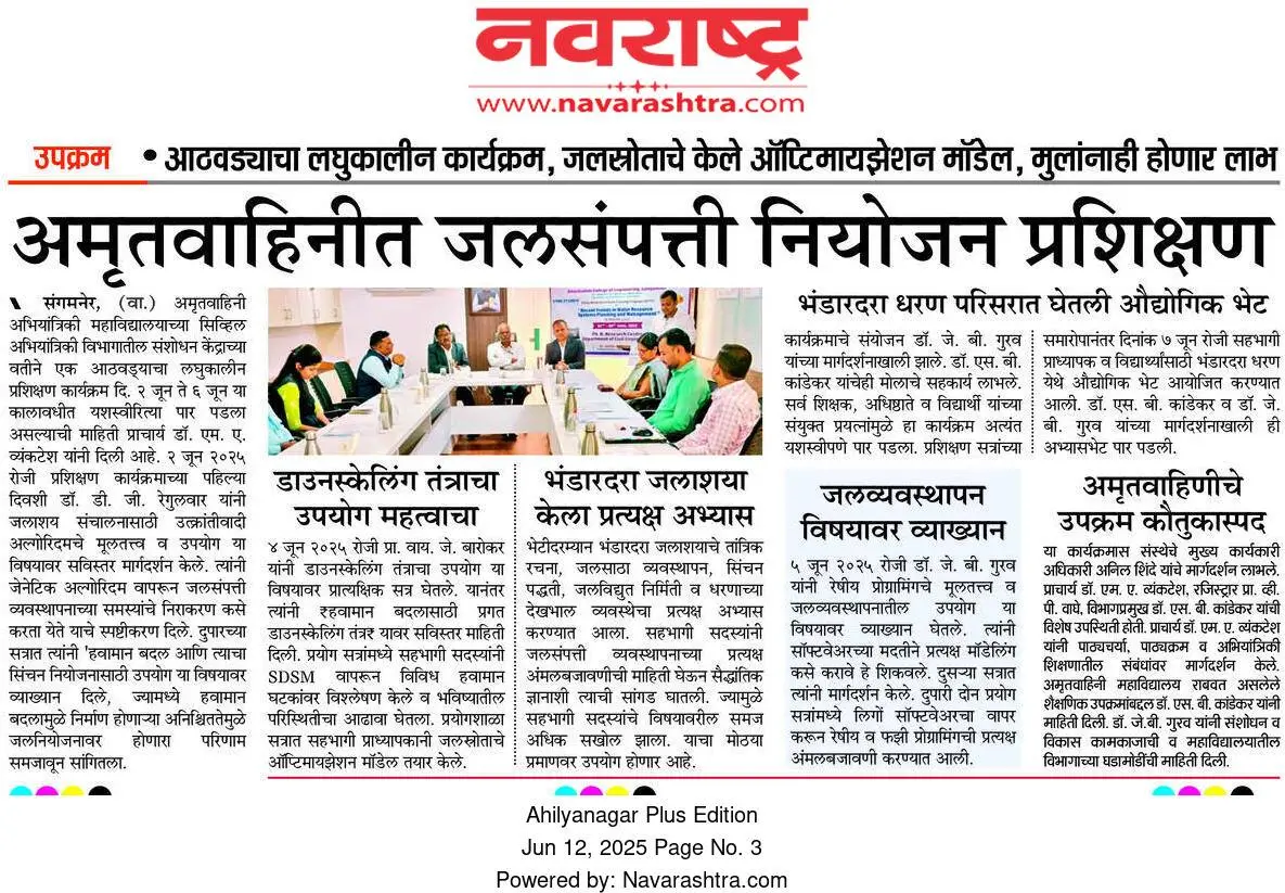 The department has got recognition under Unnat Maharashtra Abhiyaan, the flagship program of State Government of Maharashtra, under which various government activities are assessed and verified by the department like,JalyuktaShivaarYojana,Rural Water Supply Scheme, Rejuvenation of Watershed, etc in association with CTARA& IIT Bombay.