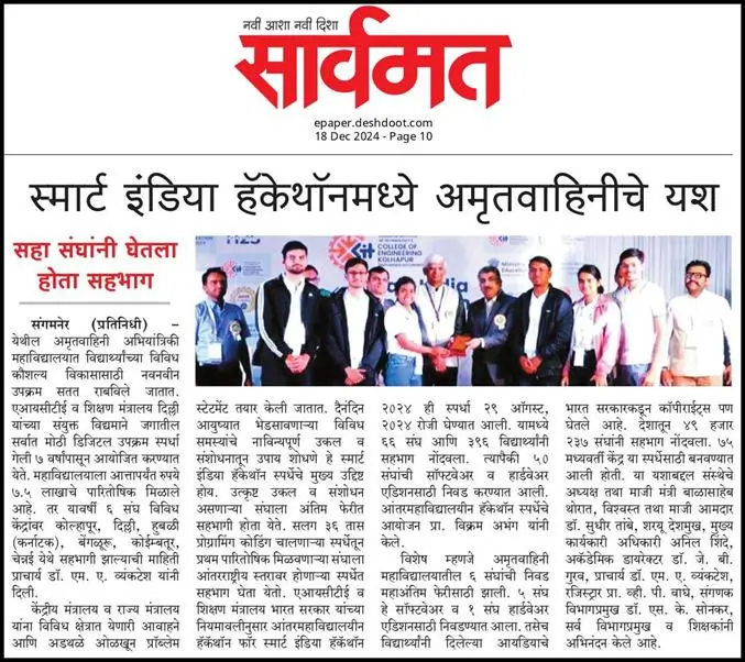 Team Captivators 3.0 bagged First Prize of Rs. 1 Lakh in Smart India Hackathon 2024 organized by Government of India