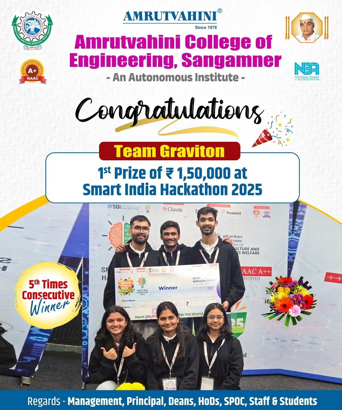 We, the management, the faculty and staff, therefore promise to strive hard and commit ourselves to achieve this objective through a continuous process of learning and appreciation of needs of time.