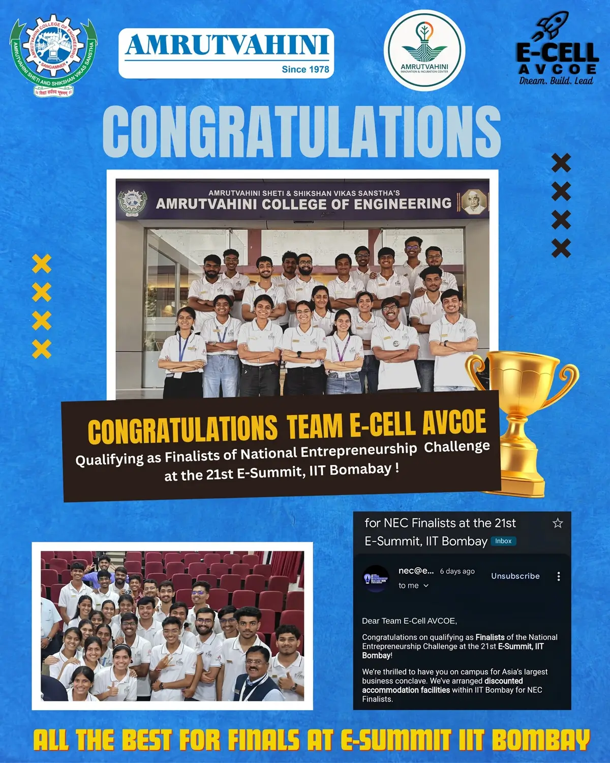 Amrutvahini College of Engineering (AVCOE), Sangamner established in 1983 under the leadership of Hon. Late. Bhausaheb Thorat and progessing under the guidance of Hon. Shri. Balasaheb Thorat, Ex-Revenue Minister,Government of Maharashtra and Hon. Dr.Sudhir Tambe (Ex-MLC Nashik). It is spread over 15.6 acres of ample greenery, with four times accreditation by NBA, New Delhi, Graded 'A+' by NACC Government of India and Educational Organization Management System(EOMS)in accordance with ISO 21001:2018. It boasts state of art IT centre with 500 MBPs Leased Line and 300 MBPs Broadband Internet Facility. It has a huge library that accommodates 69,309 books,44000+ e-Books & 315 e-journals. It provides 100% placement assistance to its students through value added courses,foreign langauges (Japanese , German) and Training. It is an Institute that has always worked for imparting excellence driven engineering education that builds the future of Engineers and Entrepreneurs.