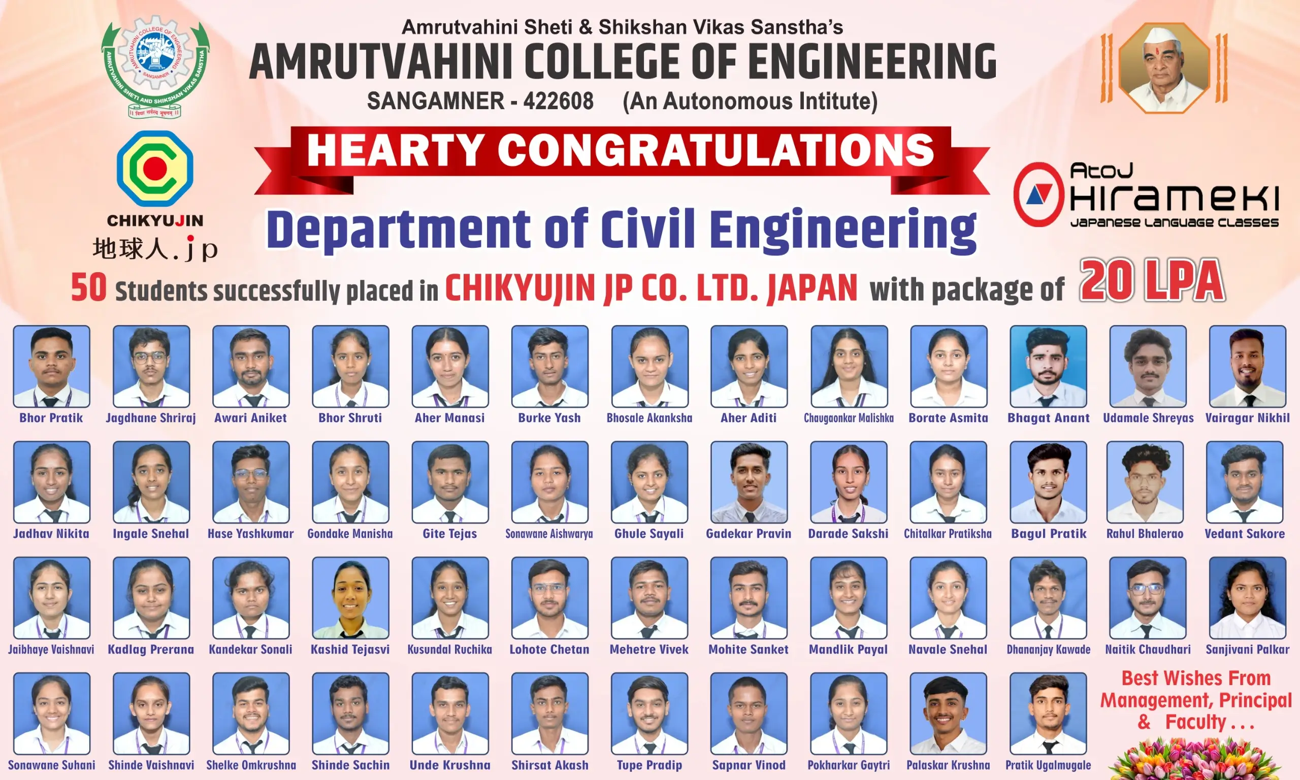 | 30 | Dr. M.R. Wakchaure | Certificate of Honour from Architect and Engineers Association, Nashik, 2018 |