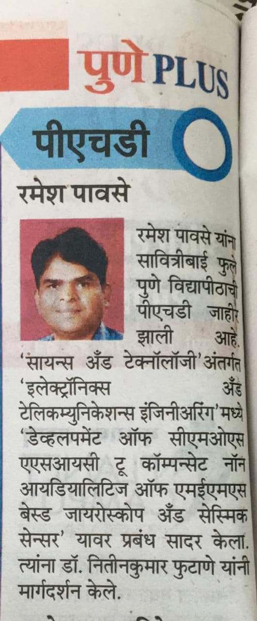 Name : Dr. R. P. Labade Area of Specialization: RF and Microwave Engineering, Antenna and Wave Propagation, Microstrip Antennas, UWB Antennas, RF and MMIC Technology Biodata: Read MoreYoutube Video Link: Click here |